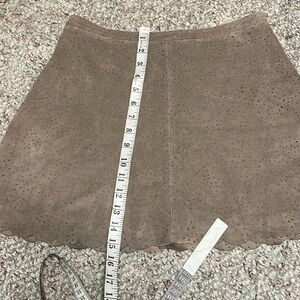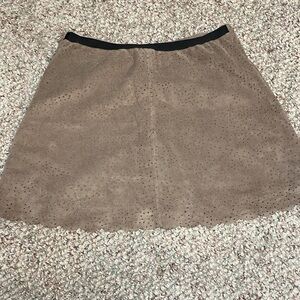 Chic tan mini skirt by BCBGMaxAzria. Features a perforated design. Perfect for stylish outings.