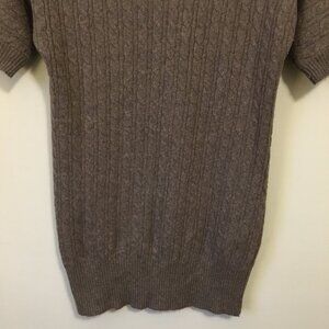 Very good preowned vintage condition, clay brown/beige mock neck, wool blend, short sleeve sweater by BCBGMaxAzria.