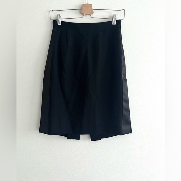 Women's Designer Black Skirt US 4 Leather strip on each side, Slit on back, Fitted Very Good Condition!