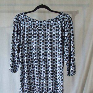 BCBGMaxAzria dress polka dot blue black brown medium pull over graphic dots