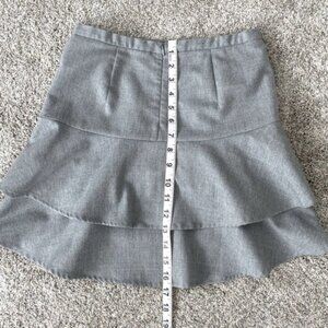 BCBGMaxAzria wool blend gray tiered ruffled lined mini skirt. Women’s size 0