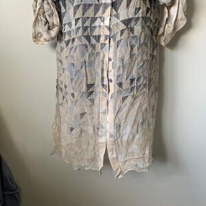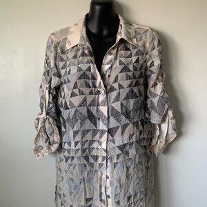 BCBGMaxazria 100% Silk Geometric Tunic Button up Blouse