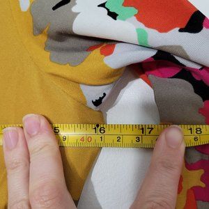 BCBGMaxazria A-Line Ruched Front Midi Dress 3/4 Sleeve Womens Floral V-Neck S