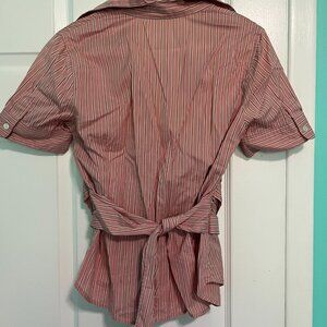 BCBGMaxazria Pink pinstripe button down blouse with tie around waist