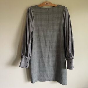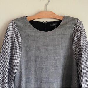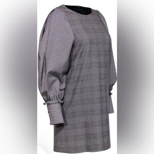 BCBGMaxazria Plaid Shift Dress Long Sleeve Mini Prep Tartan Grey White Large