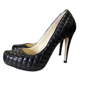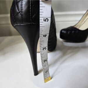 black BCBG ENERATION heels in textured tuffing. size 8.5. some skuffs on one shoe shown in pictures.