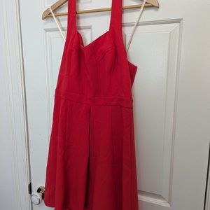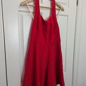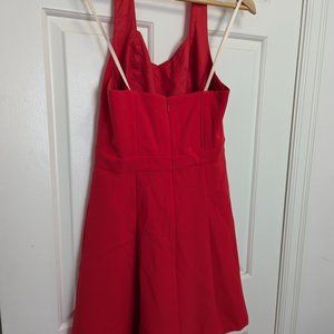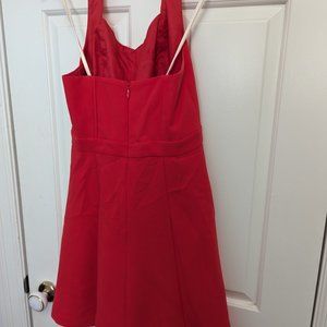 A-Line style mini red dress in women's size 6. Best fits someone petite or who doesn't mind showing a LOT of leg lol. Bought new, only worn 3 times. Great wedding guest or party dress.