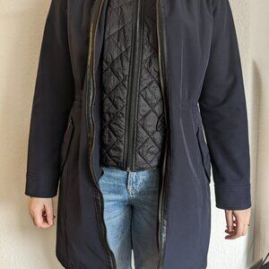 BCBGeneration Black jacket with puffer lining that can be separately zippered up. Very good used condition, used but no longer need.