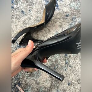 BCBGeneration Black Patent Leather Open Toed High Heels Shoes