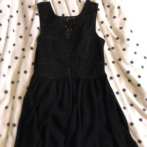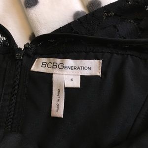 A black sleeveless mini dress from BCBGeneration with a fitted lace top and a chiffon skirt