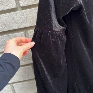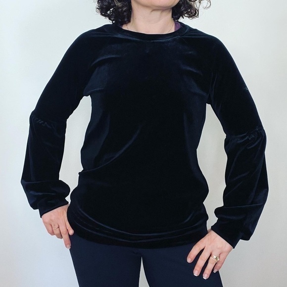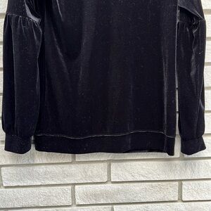 The BCBGeneration black velvet puff sleeve top is perfect for any occasion, from a night out with friends to a work event. Sleeves are fitted to the elbows the puff out with subtle volume to the wrist cuff.