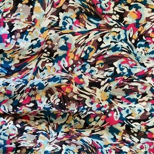 Lightly lined, two side pockets, elastic waist, slight opening showing your back above the waist line. Super comfortable can be worn in summer or fall with a sweater and boots. Machine washable