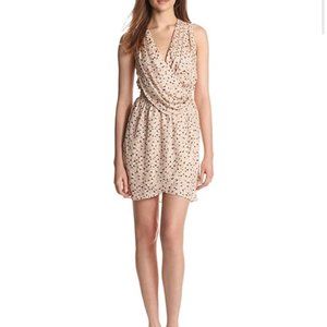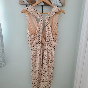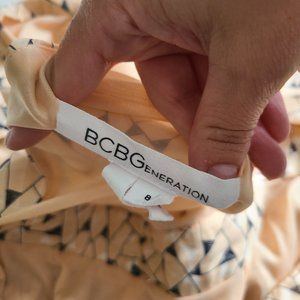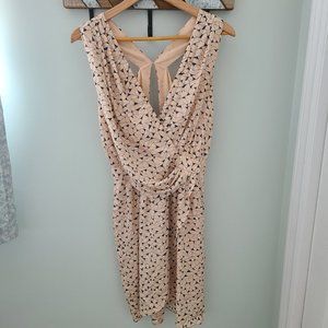 Stylish cream dress with black patterns. Features a unique back design. Perfect for any occasion.