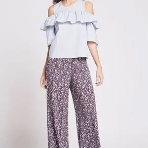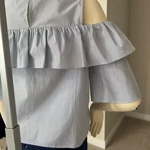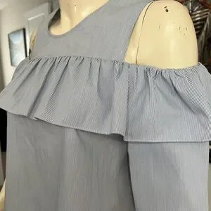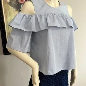 Elevate your wardrobe with this chic blue cold-shoulder top featuring stylish ruffle details. This versatile piece pairs perfectly with jeans, skirts, or shorts—ideal for brunch, casual outings, or even a relaxed evening look.