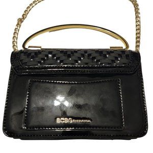 BCBGeneration Shiny Black Evening/Clutch Purse with Strap & Gold Metal Handle