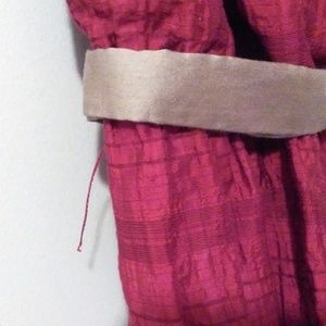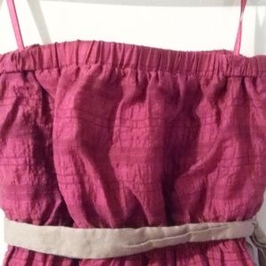 Fuschia plaid design strapless dress. Comes with toffee-coloured sash.