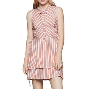 BCBGeneration Tiered Sleeveless Striped Mini, Collar shirt dress Pink Large
