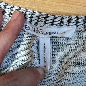 Elevate your style with this chic black and white knit textured V-neck top featuring elegant ruffle sleeves. Perfect for any occasion. In great preloved condition perfect for a holiday and beach cover up.