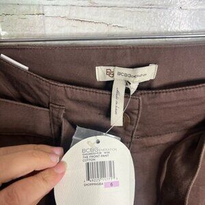 BCBGeneration flare-leg pants brown front pant cotton tie belt NWT size 6