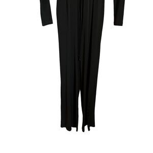 This BCBGeneration Black Surplice Jumpsuit in size XS is in great pre-owned condition with minimal signs of wear, including a small pick on the back (see photos). With pockets and a drawstring waist, this jumpsuit is both stylish and practical. Plus, the functional hole in the back makes it super convenient without needing to remove the entire piece.