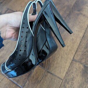 BCBGirls black polka dot peep toe slingback heeled sandals