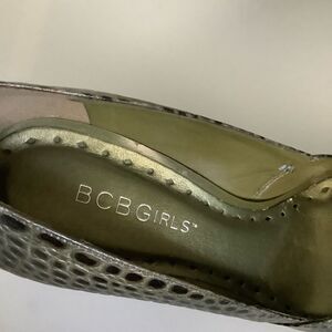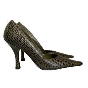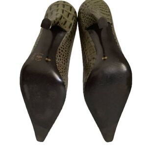 BCBGirls green and black leather croc embossed pumps. Heel measures 4”.