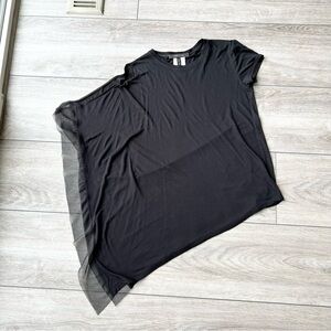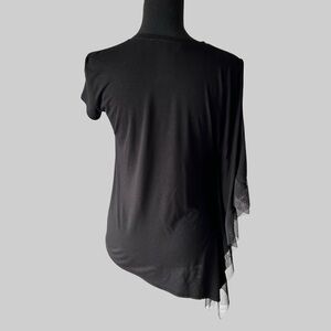 BCBGmaxazria Black Asymmetrical Sleeve "Laguna" top