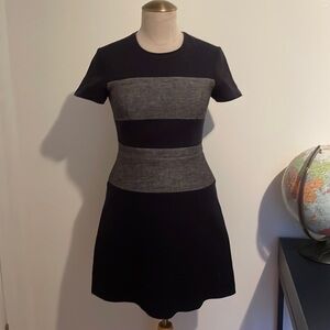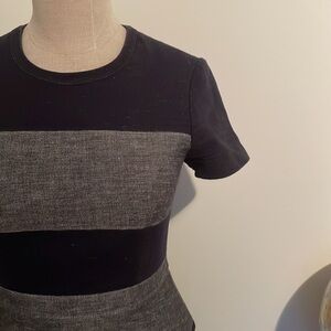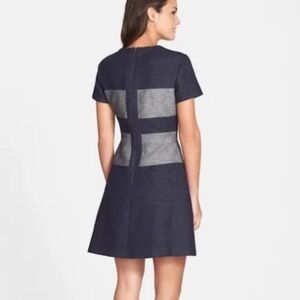 • Color Block Denim Dress. Cap Sleeve. Scoop Neck