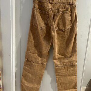 High rise jeans will unique stitching and pockets. Size 27 In very good condition.