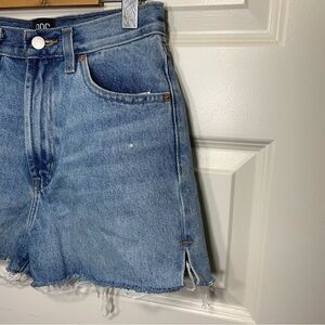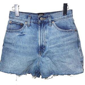 In very good condition. BDGs favorite short-short, girlfriend fit. Distressed denim cut slim from the high waist down to the raw-edge, frayed hem. Small slit on the sides.Button and Zipper fly. 5-pocket detailing.