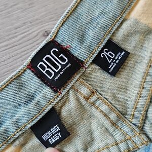 Urban Outfitters BDG High Rise Baggy Jeans. drip dyed so have an off white color dyed into the blue jean. size 26