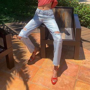 BDG High-Waisted Slim Straight Jean –Distressed Bleached Wash