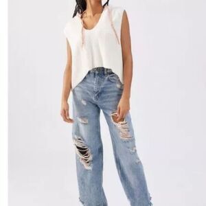 BDG Hooded white striped slouchy Sweater Vest Size M Knit layering