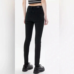 High-rise black jeans with slashed knees, exclusively for UO by the staple collection BDG. In the skinny Twig fit in super-stretch denim for a skintight fit all day long. Finished with 5 pockets and a zipper fly.