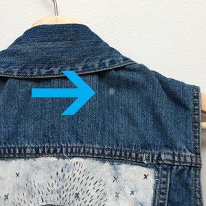 There is a small white dot on the back of the shirt indicated by the arrow on the photos