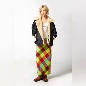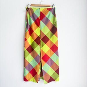 BDG Urban Outfitters Janelle Printed Plaid Red Green Midi Skirt S