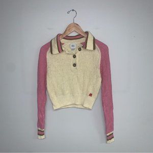 BDG Urban Outfitters Taylor Collared Sweater Size XS Cream Pink Cropped Knitted