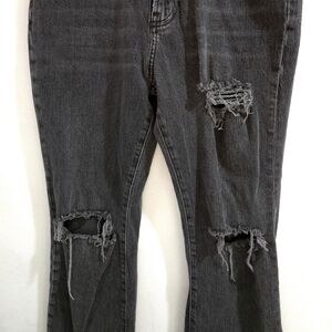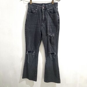 Stylish distressed black jeans perfect for a casual look. Comfortable fit with a trendy design.BDG | Women's Distressed Black Jeans Stretch High Rise Flare