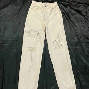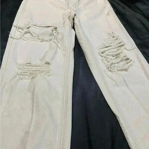 🎈BDG Y2K High waisted distressed baggy cream jeans