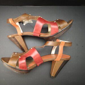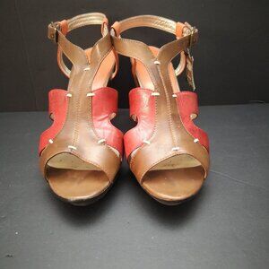 BE by Blondo Valorie Ladies Size 8.5 Leather Upper & Lining Brown & Red Sandals