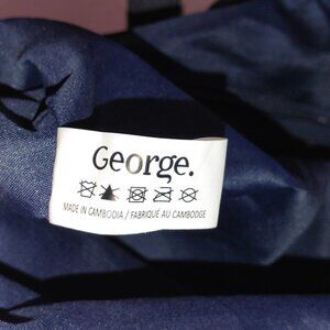 It has a clear plastic body and navy blue trim. The interior is navy and white stripe.