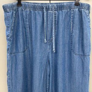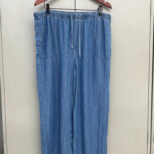BEACH LUNCH LOUNGE Chambray Drawstring High waisted Pants 100% Lycocell SIze L