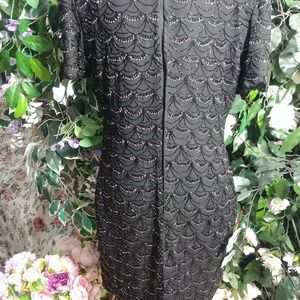 This dress is fully beaded front and back. It is truly stunning. Lined, zippered back, Shift Style probably from the 1980's so I guess its Vintage. There is no size tag in the garment. I estimate it to be either a Medium/Large.nMade by Night Vogue