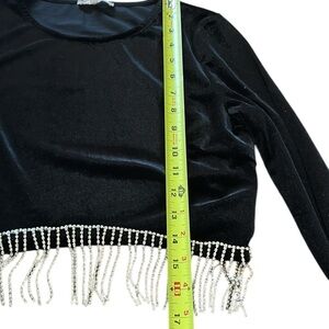 BEAR DANCE black velvet crop top,rhinestone fringe ,whimsigoth,goth,witchy,EC