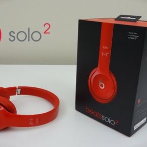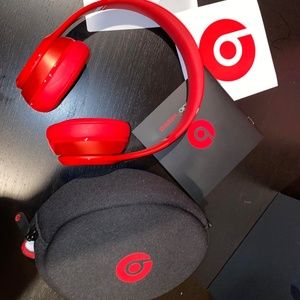 Red beats solo2 wireless headphones. Everything included in original box including: headphones, charging cable, case, sticker, clip, instruction manual. Great condition, has been used twice.