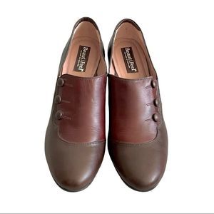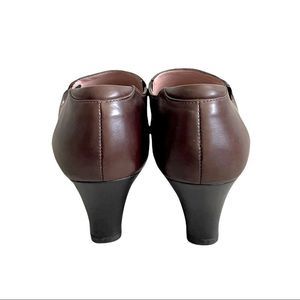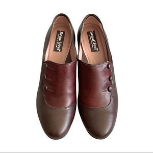 BEAUTIFEEL Leather Slip On Shoes With Small Heel Side Buttons Brown Burgundy 39