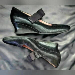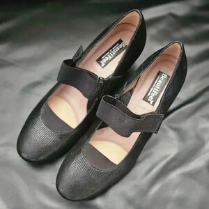 BEAUTIFEEL VICTORIA Black Luminous Suede Pump Black Strap shoe Sz. /8.5 /9 US