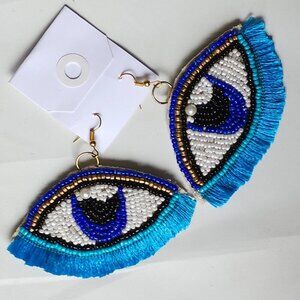 BEAUTIFUL EVIL EYE Dangle Earrings PAIR Hand Crafted Beaded All Seeing Eye