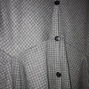 it is an asymitrical design that makes the dress so unique. it is gray and black little squares