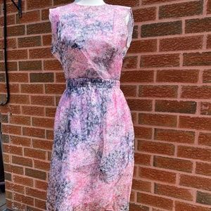 BEAUTIFUL Vintage Carven Pink Multicolour Sheer Floral Print Dress, Size 36